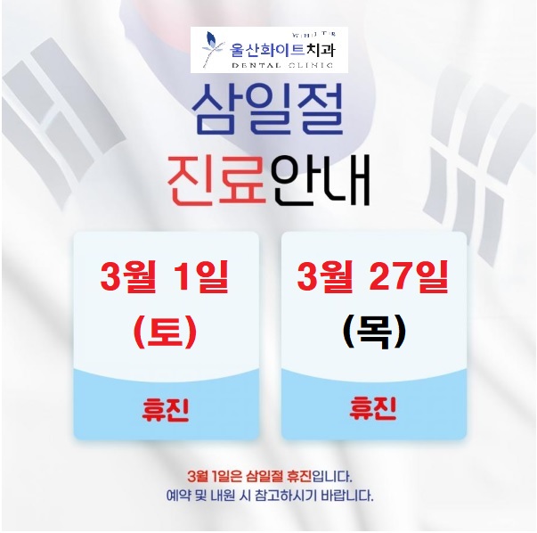 3월 1일(토): 삼일절 - 휴진